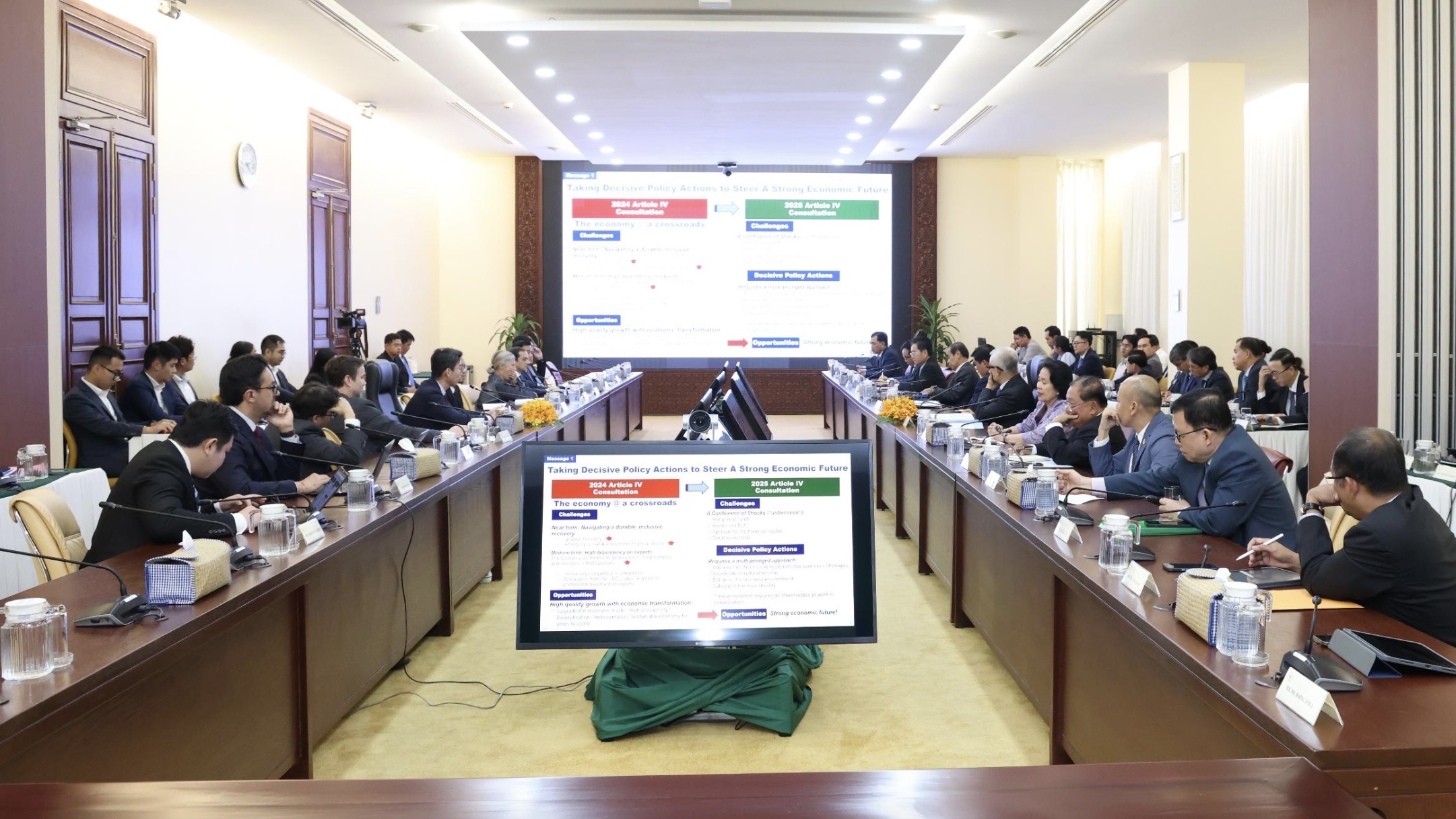 会议最后,柬方再次对IMF为柬埔寨中长期韧性增长、气候友好型发展及可持续路径提供的政策建议表示感谢,双方同意将进一步深化宏观经济政策协调,共同应对全球经济环境变化带来的挑战。