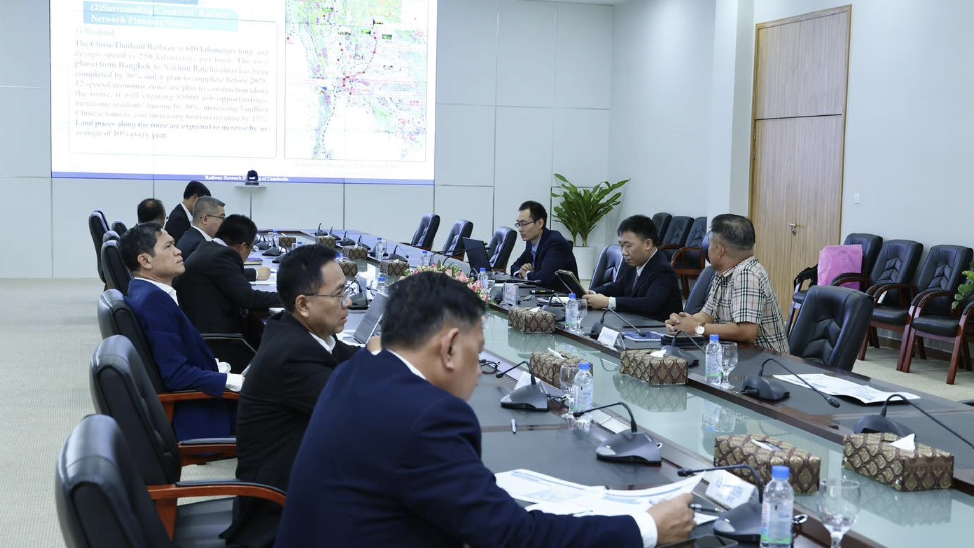 在柬埔寨大力推进德崇扶南运河等重大基建项目的背景下,铁路交通网络规划同步提上重要日程。近日,柬埔寨公共工程与运输部部长宾波尼(Peng Ponea) 会见中国铁路设计集团有限公司(China Railway Design Corporation)代表团,公共工程和运输部相关官员陪同出席会议。