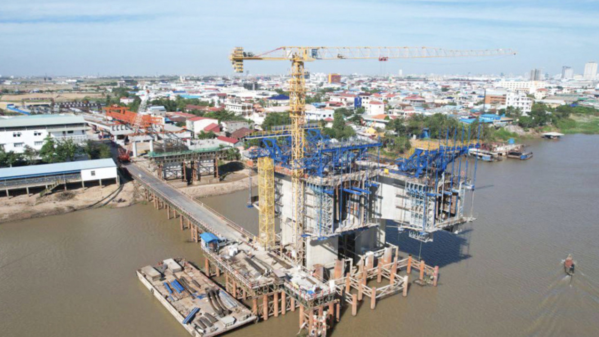 作为改善金边及周边区域交通连接的关键基础设施,该项目于2024年2月19日在柬埔寨首相洪玛奈主持下正式破土动工。据悉,百达隆巴萨河大桥全长845米,衔接金边市棉芷区与铁桥头区,是金边南部路网规划的核心节点之一,建成后将成为横跨巴萨河的主要交通通道。