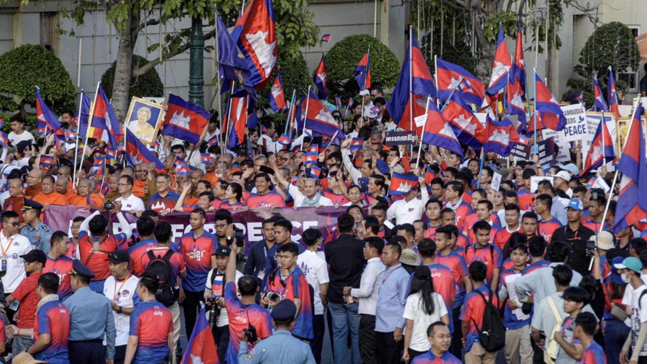 12月18日,数万柬埔寨民众聚集参加“和平游行”活动