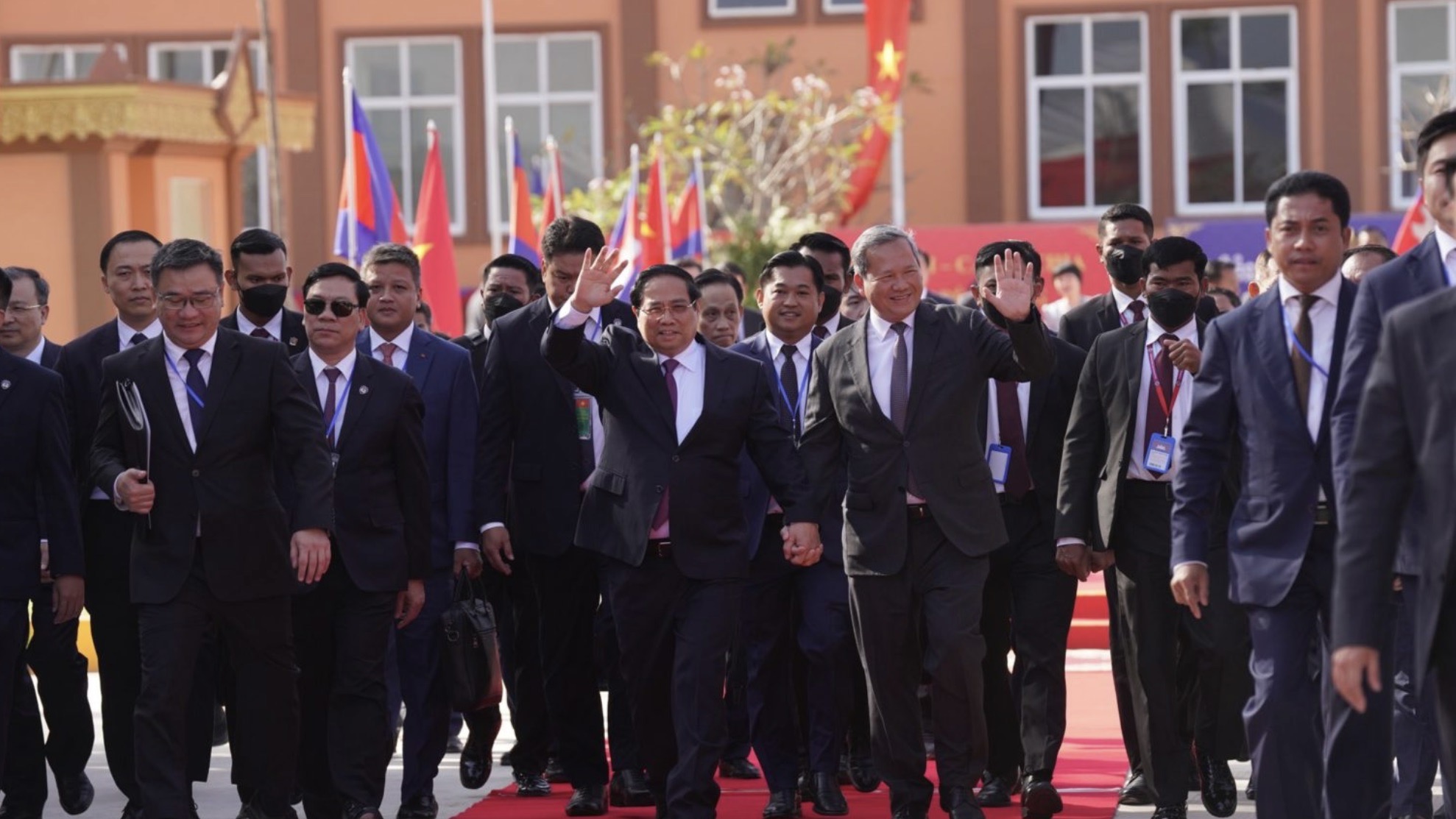 越南总理范明政(左)与柬埔寨首相洪玛奈(右)