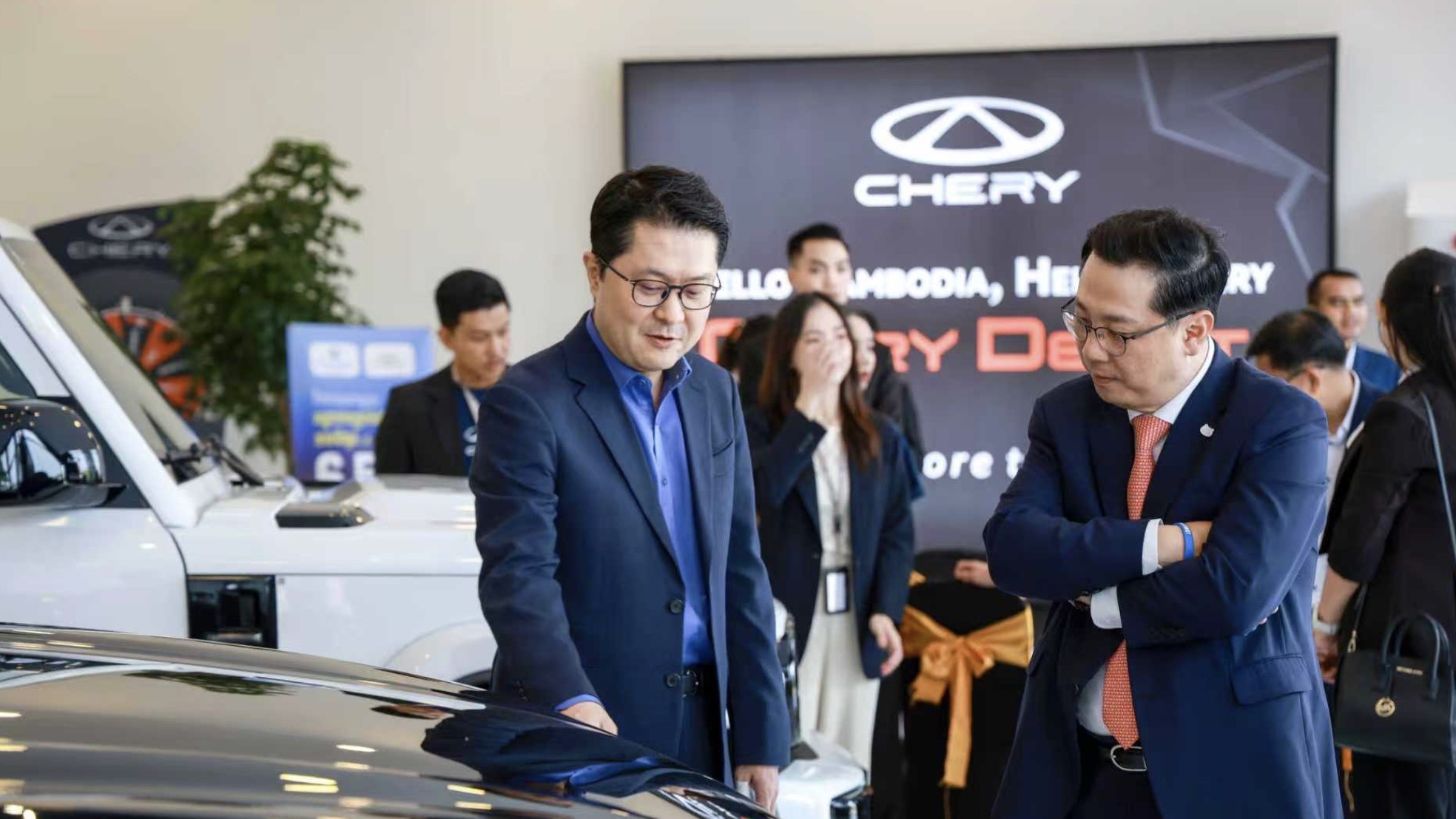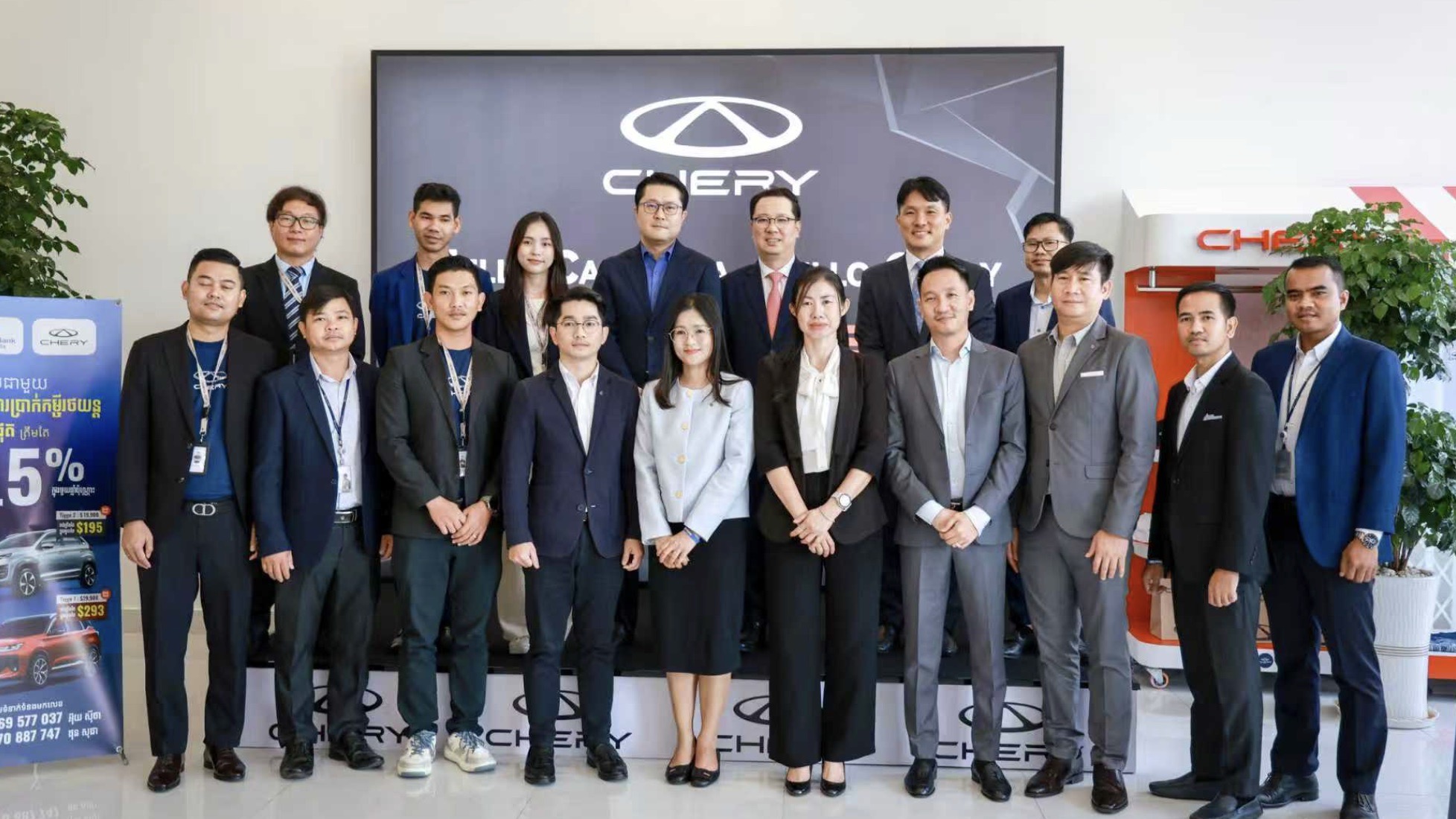 “Chery is Global,Now in Cambodia——奇瑞,全球品牌,现已登陆柬埔寨。”