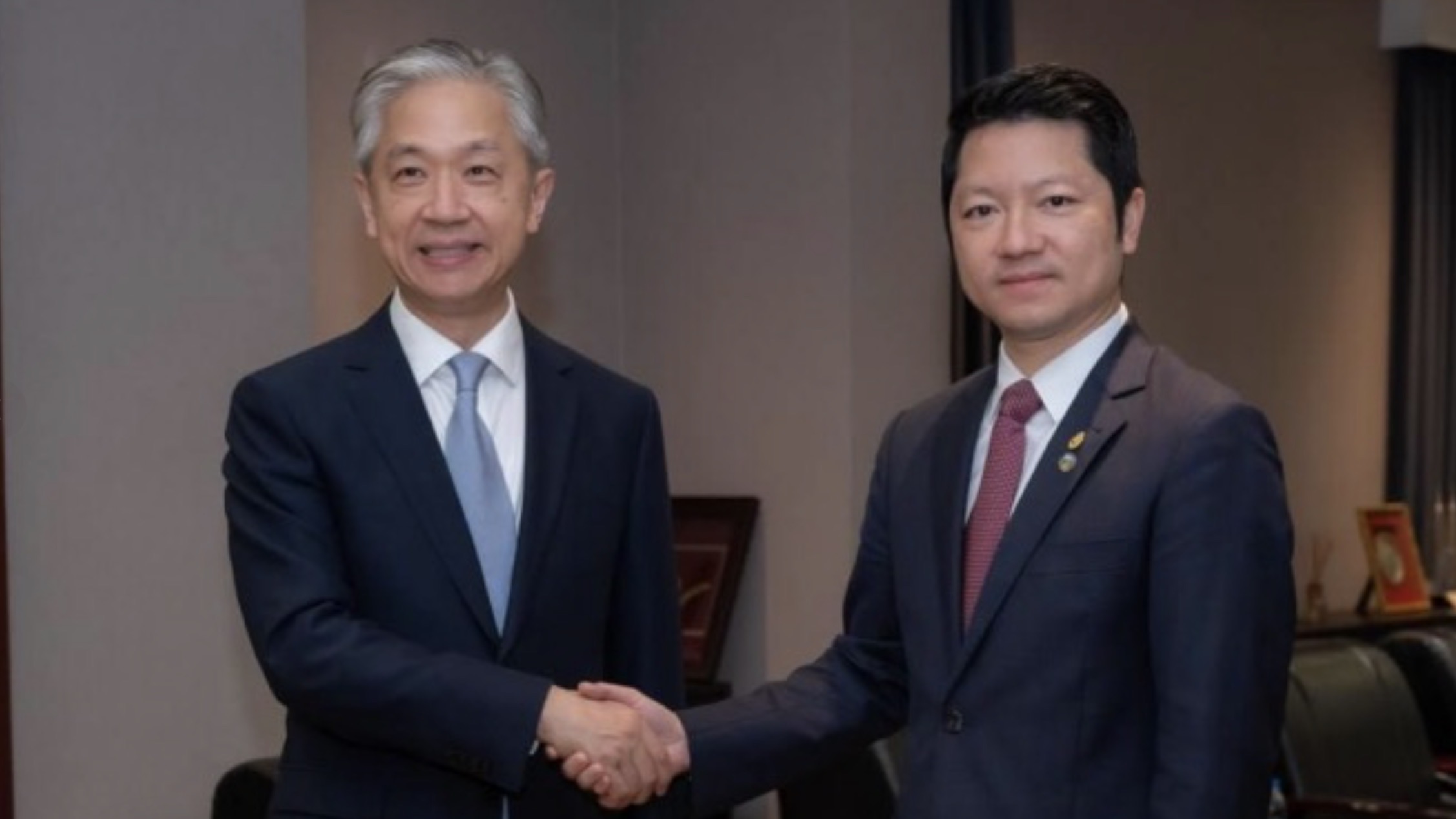 图为2024年8月6日中国驻柬埔寨大使汪文斌到任拜会时任柬埔寨旅游部长宋速肯阁下