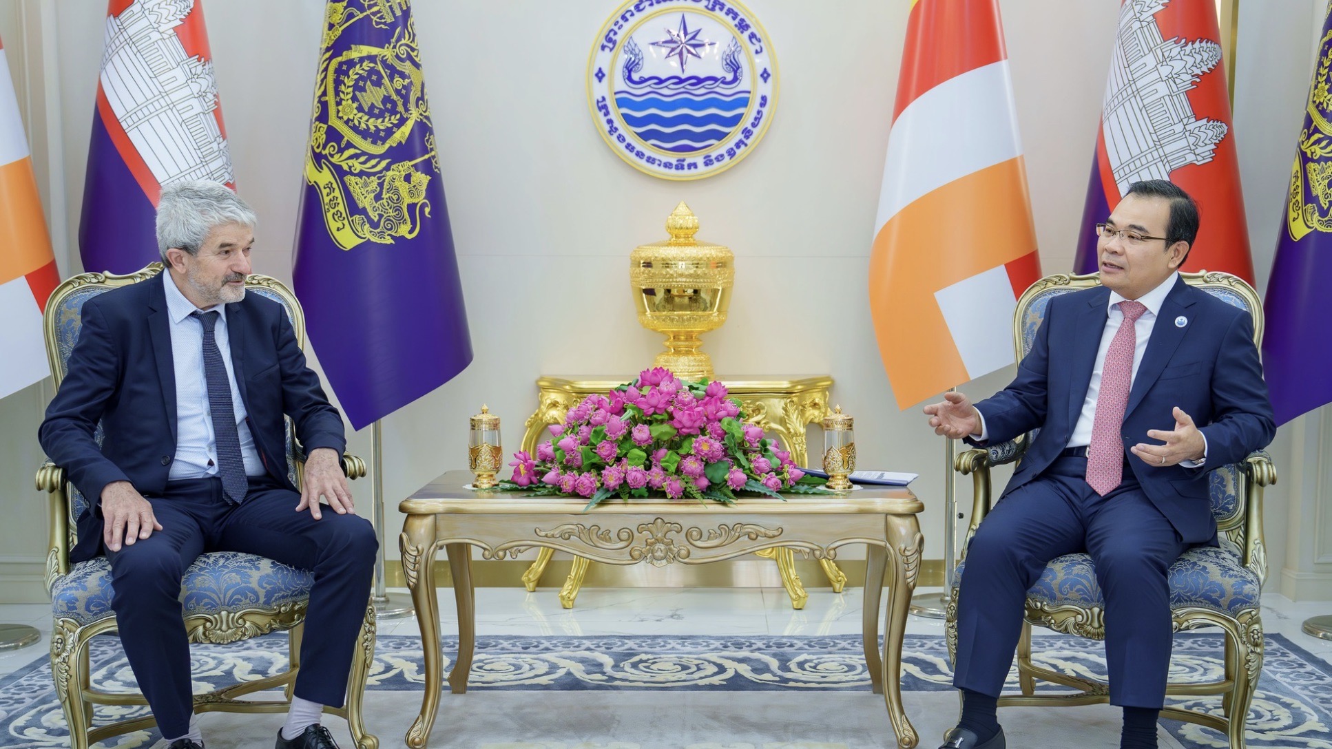 近日,柬埔寨水源气象部部长Thor Chetha会见法国BRL Ingénierie公司首席执行官Gilles Rocquelain及代表团,双方围绕水资源治理、气候应对等领域展开交流,探讨深化合作、拓展投资空间的可行路径。