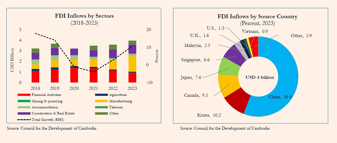 在东南亚,柬埔寨是一个很难被忽视的样本。世界银行的数据显示,按国际收支口径计算,柬埔寨在过去几年里每年吸引的外商直接投资净流入大致稳定在40–44亿美元之间,对应的FDI/GDP比重长期维持在9%左右。在低收入和中低收入经济体中,这种投资强度并不常见,即便在疫情冲击最严重的年份,这一比例也没有出现明显塌陷。正因如此,柬埔寨常常被描述为“外资高度成功的经济体”。