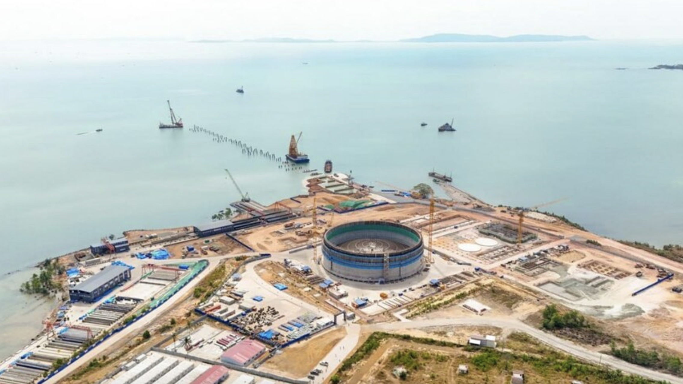 近日,柬埔寨矿产与能源部部长乔拉达纳(Keo Rattanak)赴国公省,视察柬埔寨首座液化天然气发电厂的建设工地,并同步更新了项目最新进展。