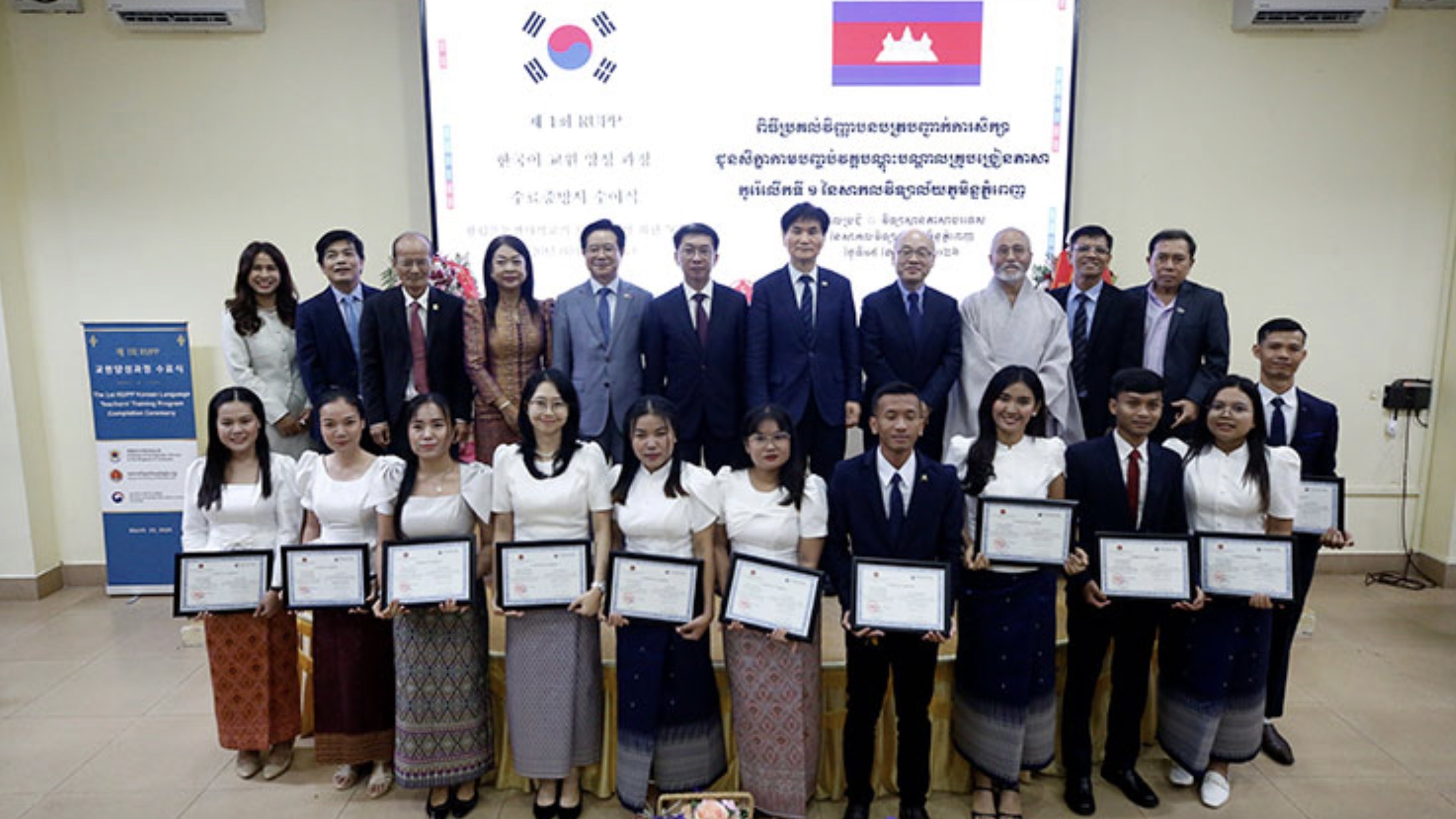 当前,柬埔寨与韩国正持续加强韩语培训合作,双方均认为,语言教育是推动人力资源开发、拉紧双边纽带的重要基础。韩国驻柬大使金昌勇(KIM Chang Yong)日前在金边皇家大学韩语教师培训课程结业典礼上致辞称,过去三十年间,韩柬两国各领域合作稳步拓展。他指出,教育与人力资源开发始终是深化双边关系的核心内容。