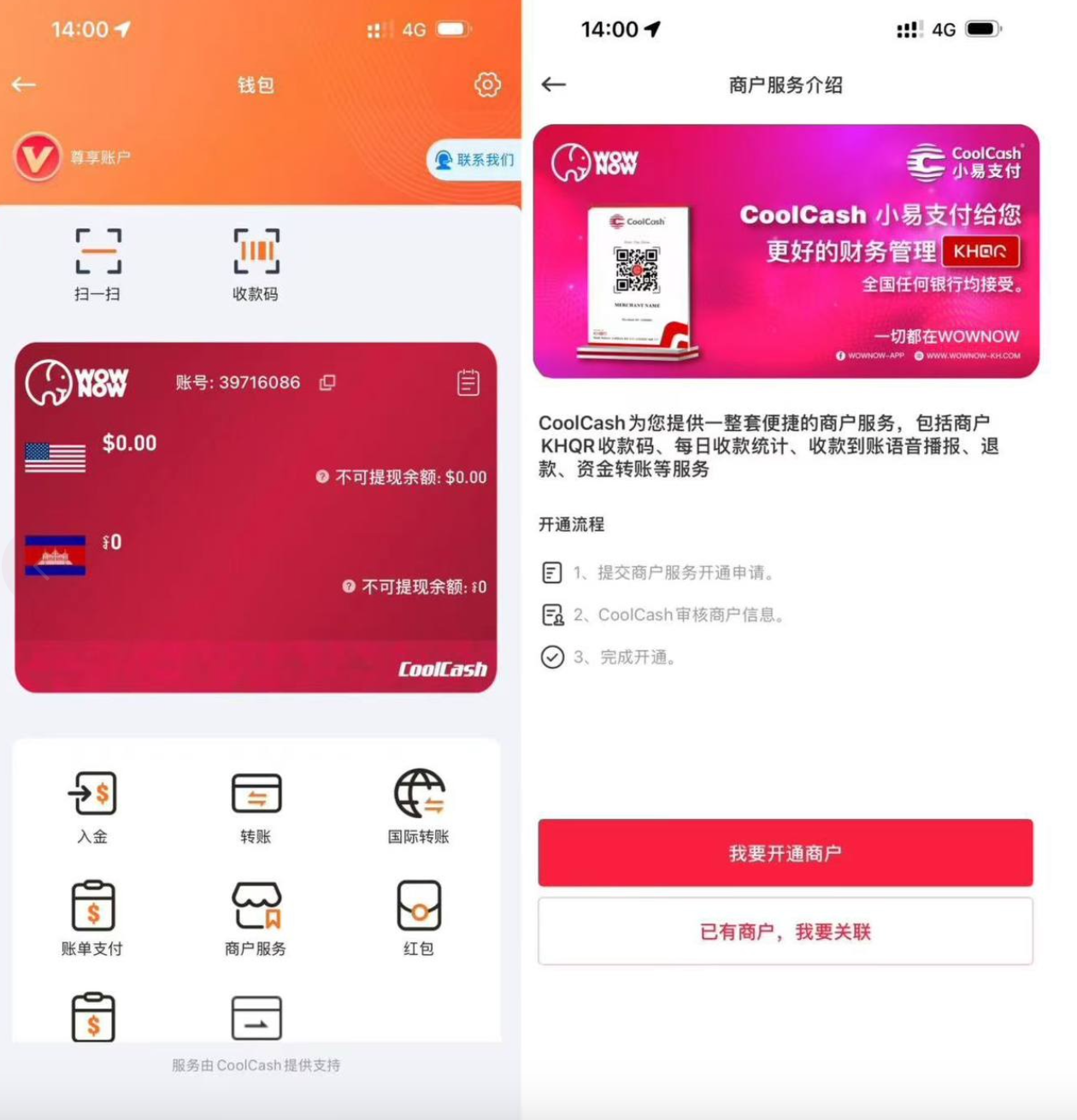 2025年9月,柬埔寨领先的金融科技平台CoolCash小易支付与最大的生活服务平台WOWNOW大象APP正式签署战略合作协议。此次合作标志着柬埔寨“金融支付+即时生活服务”生态联盟的形成,双方将通过深度整合支付与外卖场景,全面提升商户与用户的资金结算与消费体验。